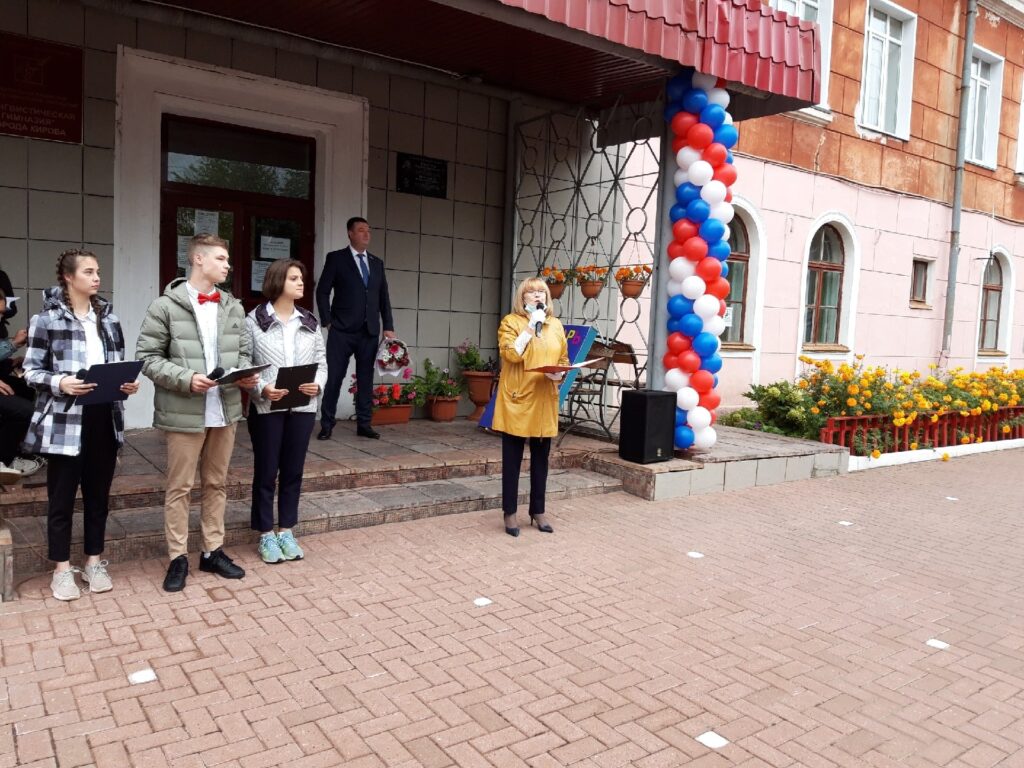 1 сентября в гимназии состоялась торжественная линейка для первоклассников, посвященная Дню знаний. Линейку открыла Надежда Владимировна Коробкина, директор гимназии, пожелав учащимся, родителям и педагогам успешного учебного года. С приветственным словом выступил Сергей Васильевич Халевин, депутат Кировской городской думы.
